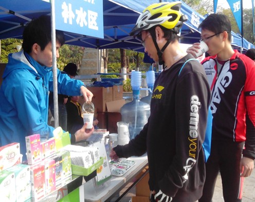 活動現(xiàn)場,飲水區(qū)旁的樂淳即溶茶吸引了大家的眼球。樂淳即溶茶精選優(yōu)質(zhì)原葉及新鮮花果經(jīng)由先進低溫萃取技術(shù)精粹而成,具有速溶、無茶渣、冷熱皆宜且保留了原茶的色香味等特點。運動過程中自由基與運動疲勞的關(guān)系早已為人所熟知,聯(lián)合國糧農(nóng)組織(FAO)認為,茶多酚作為一種天然的抗氧化劑,茶多酚及其主要單體兒茶素所具有的多酚羥基結(jié)構(gòu)決定了它能效清除自由基,對延緩運動疲勞、提高人體運動能力及維護運動員健康將起到積極的作用。速溶茶的問世,解除了傳統(tǒng)泡茶的繁瑣,一撕一沖一泡,即成一杯解渴好茶。原來,運動場上,喝茶也這么方便。